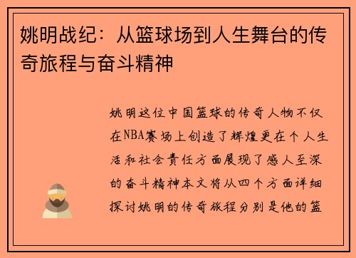 姚明,这位中国篮球的传奇巨星,以其卓越的身高和出色的投篮技巧在NBA及国际赛场上赢得了无数荣誉。本文将深入剖析姚明经典投法,探索他独特的投篮技巧与训练秘诀。我们将从四个方面进行详细阐述:姚明的投篮姿势、力量与协调性、心理素质以及日常训练方法。这些要素共同构成了姚明卓越的投篮能力,为希望提升自己投篮水平的球员提供宝贵的参考。通过对这位篮球巨星成功经验的解读,广大篮球爱好者可以更好地掌握和运用这些技巧...