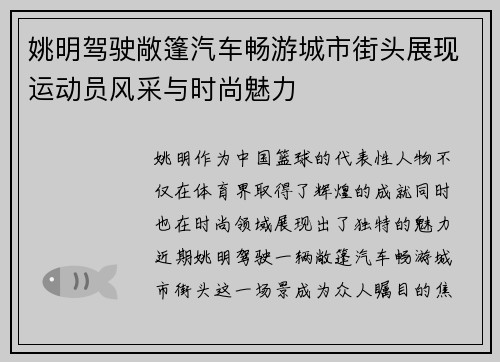 姚明模式舞蹈是一种独特的舞步,其魅力源自于姚明本人的运动背景与表现风格。这种舞蹈不仅融合了篮球元素,还展现了优雅的肢体语言,能够吸引不同年龄层的观众。本文将从四个方面深入解析姚明模式舞蹈的魅力所在,包括其艺术表现、技术要领、适合人群以及在社交场合中的应用。此外,我们还将分享一些实用技巧,帮助读者轻松掌握这一独特的舞步,从而更好地体验和享受舞蹈带来的乐趣。 1、艺术表现与文化底蕴 姚明模式舞蹈不仅...
