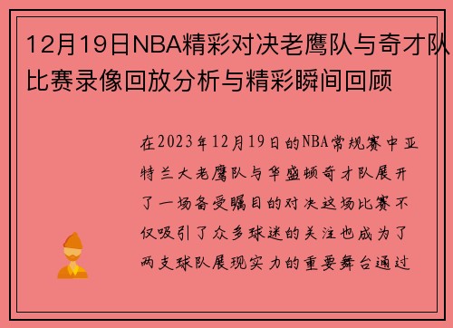 今天,篮网与湖人之间的对决无疑是篮球迷们期待已久的一场精彩赛事。本文将全面解析这场比赛的直播时间及观看方式,为广大球迷提供全方位的攻略。我们将从四个方面进行详细阐述:一是比赛的具体时间安排;二是各大平台的直播渠道;三是如何选择最佳观看体验;四是赛前和赛后的互动活动。通过这些内容,希望能帮助每一位球迷更好地享受这一场激烈对抗,感受篮球带来的激情与快乐。 1、比赛直播时间安排 今天篮网对湖人的比赛定...